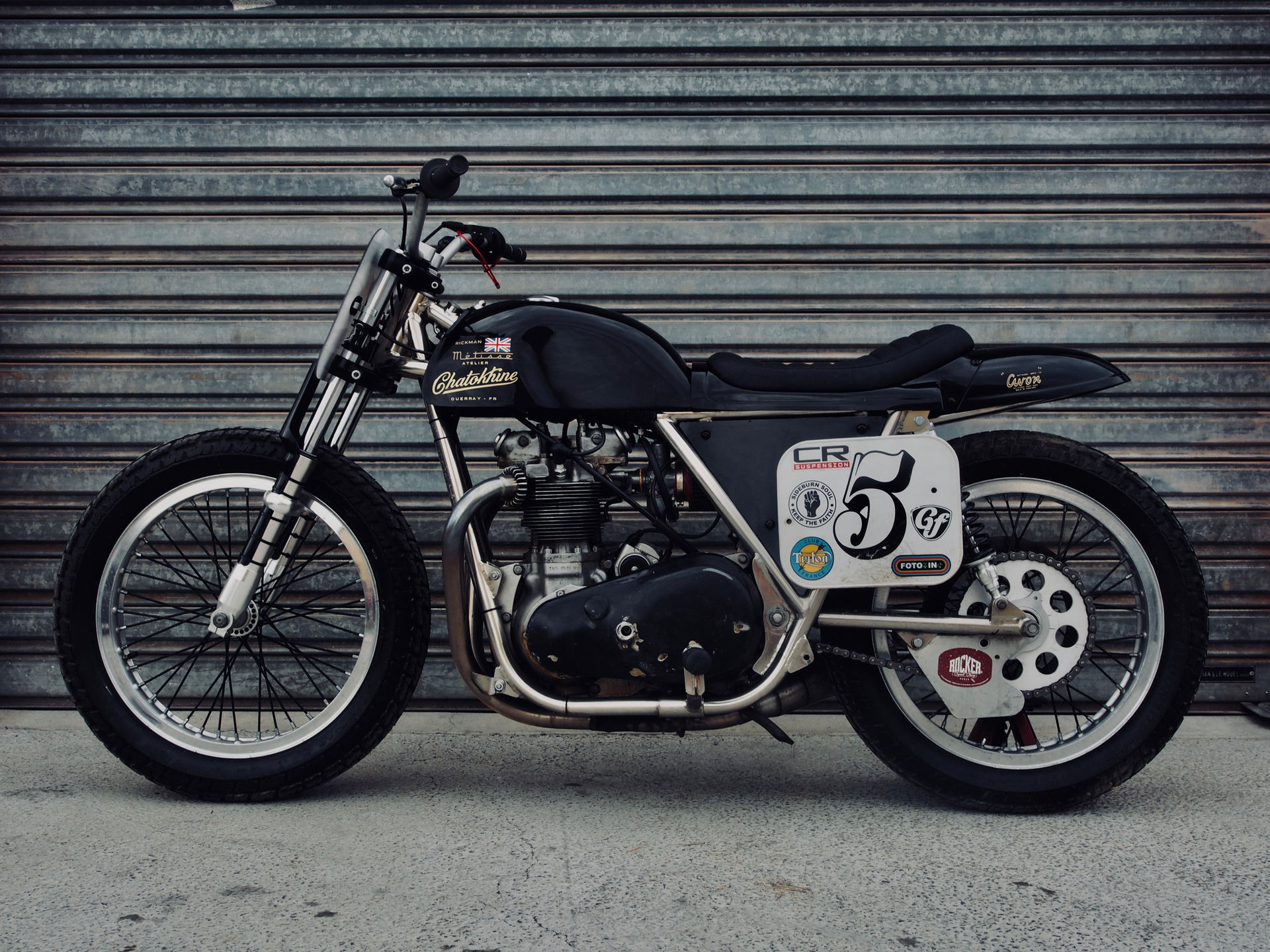 Cette Rickman est l'un des emblèmes de l'atelier. Elle est la moto de Frank Chatokhine depuis toujours et a été modifiée au grès des disciplines pratiquées. Cette moto est entièrement prévue pour la pratique du flat track et a été championne d'angleterre en 2014. Montée avec une fourche ceriani replica proposée par l'atelier.